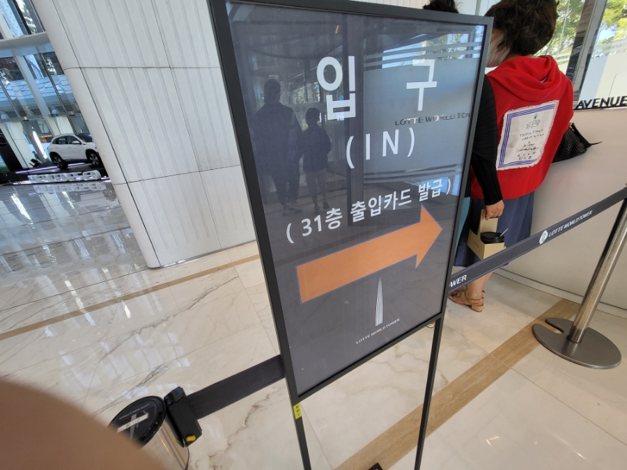 여기 사진보시면 롯데월드타워 1층 EAST (동문)으로 오셔야 합니다.