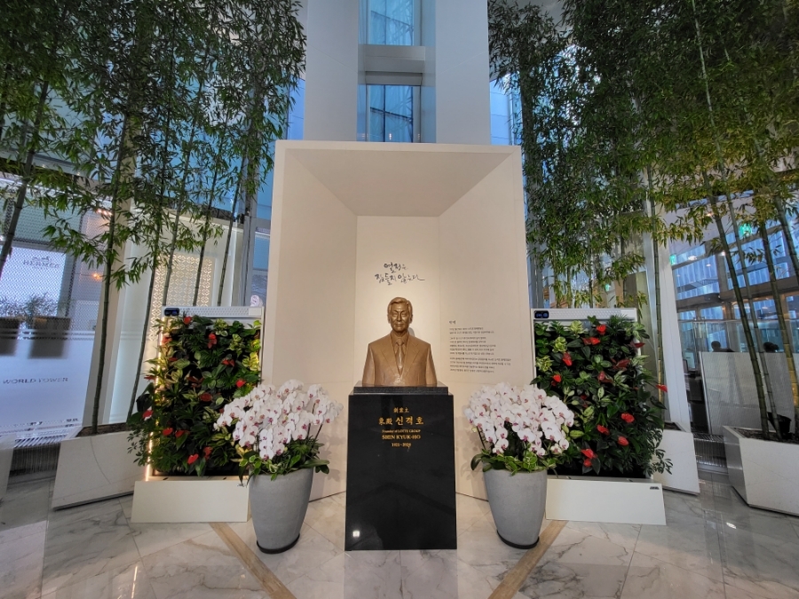 롯데 회사의 전설, 신격호회장님 흉상이 있는 메인 로비입니다.