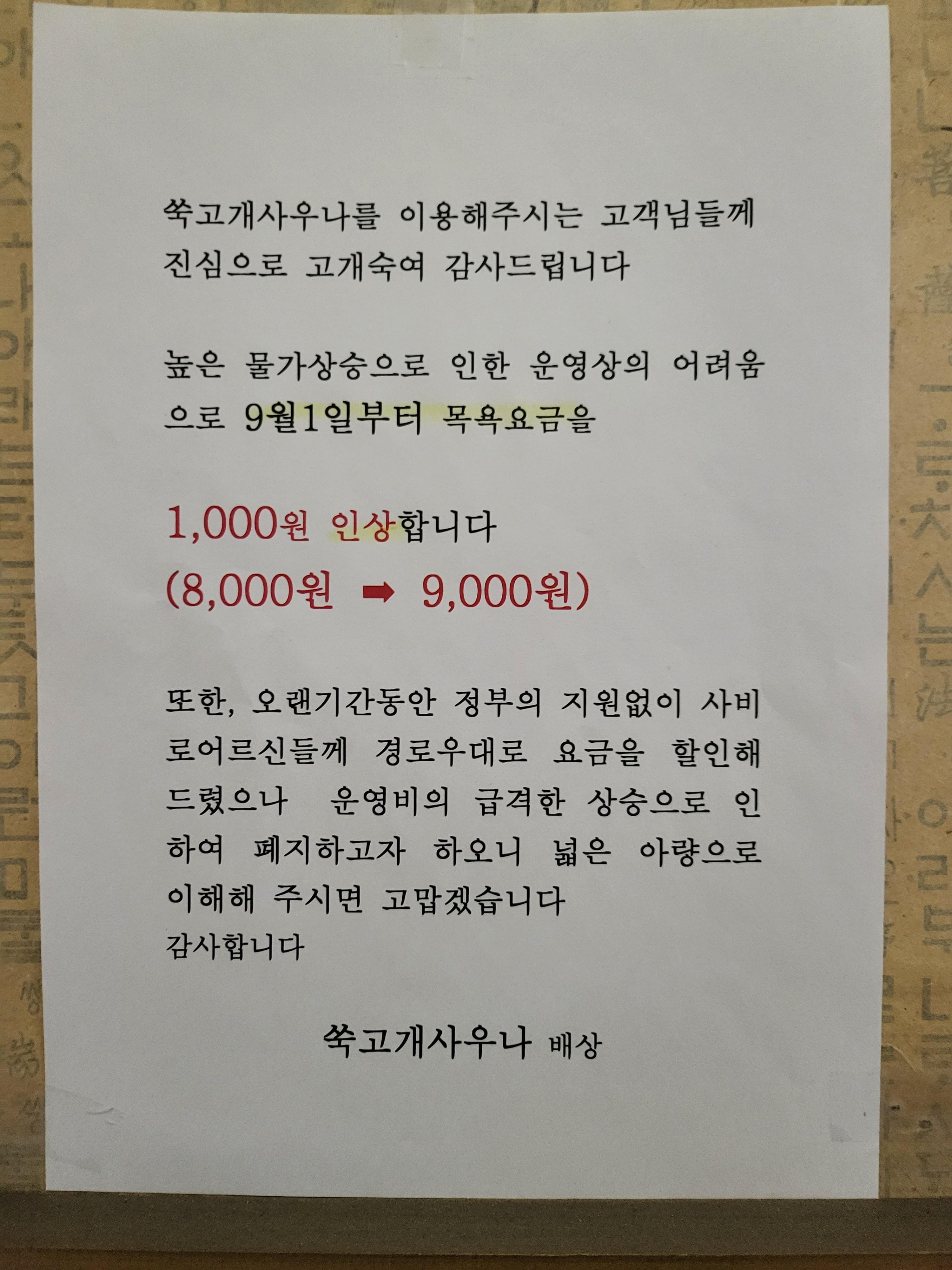 신림동 쑥고개 사우나보다 아직 1000원 저렴한 8000원입니다만, 저희 동네 인상요금도 시간문제인듯합니다.