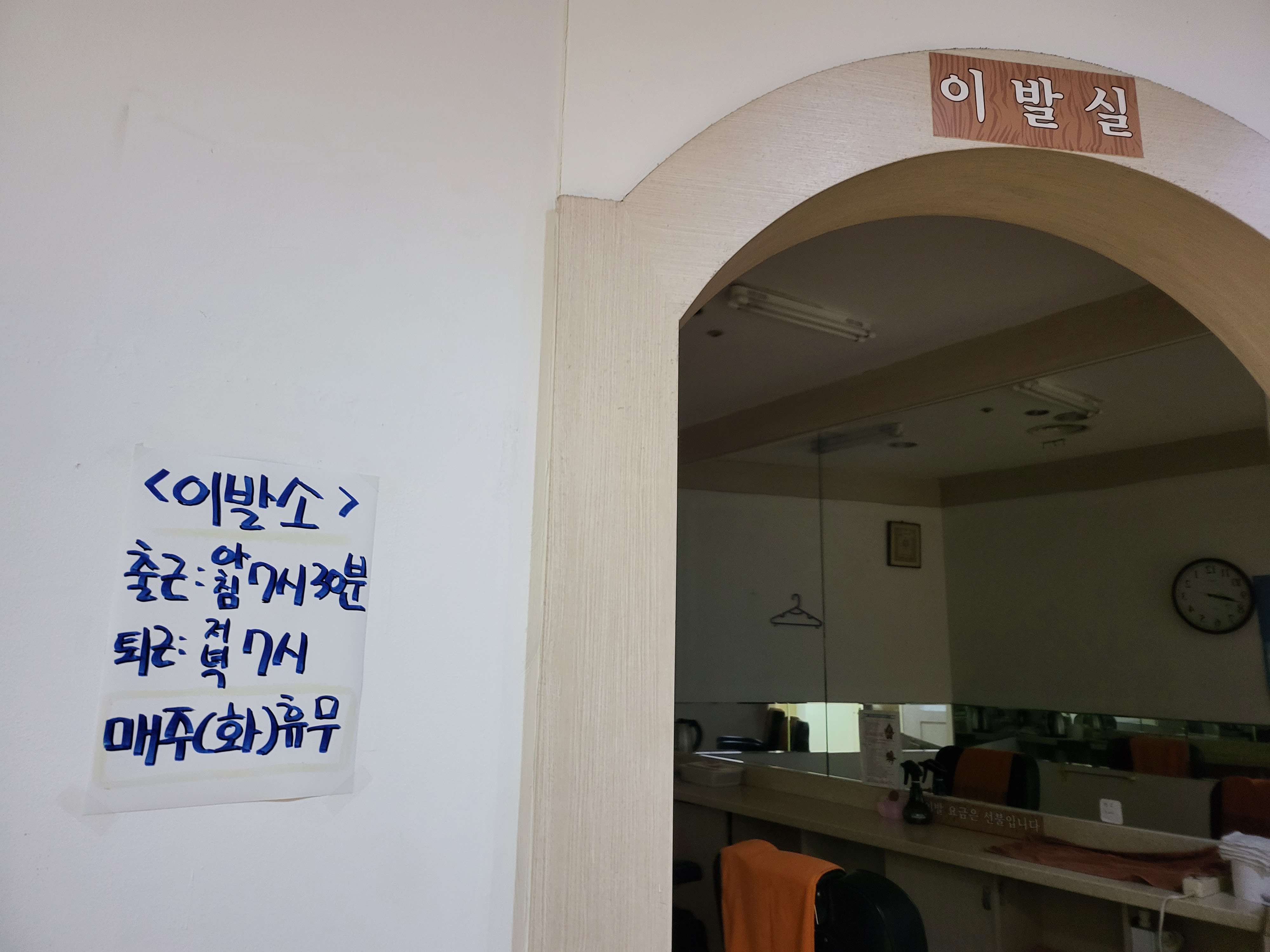 매주 화요일은 쉬는 날인데, 고작 5천원밖에 안해요. 아마 주변에 어르신들이 많아서 저렴하게 이발 비용을 정한 것 가탕요.