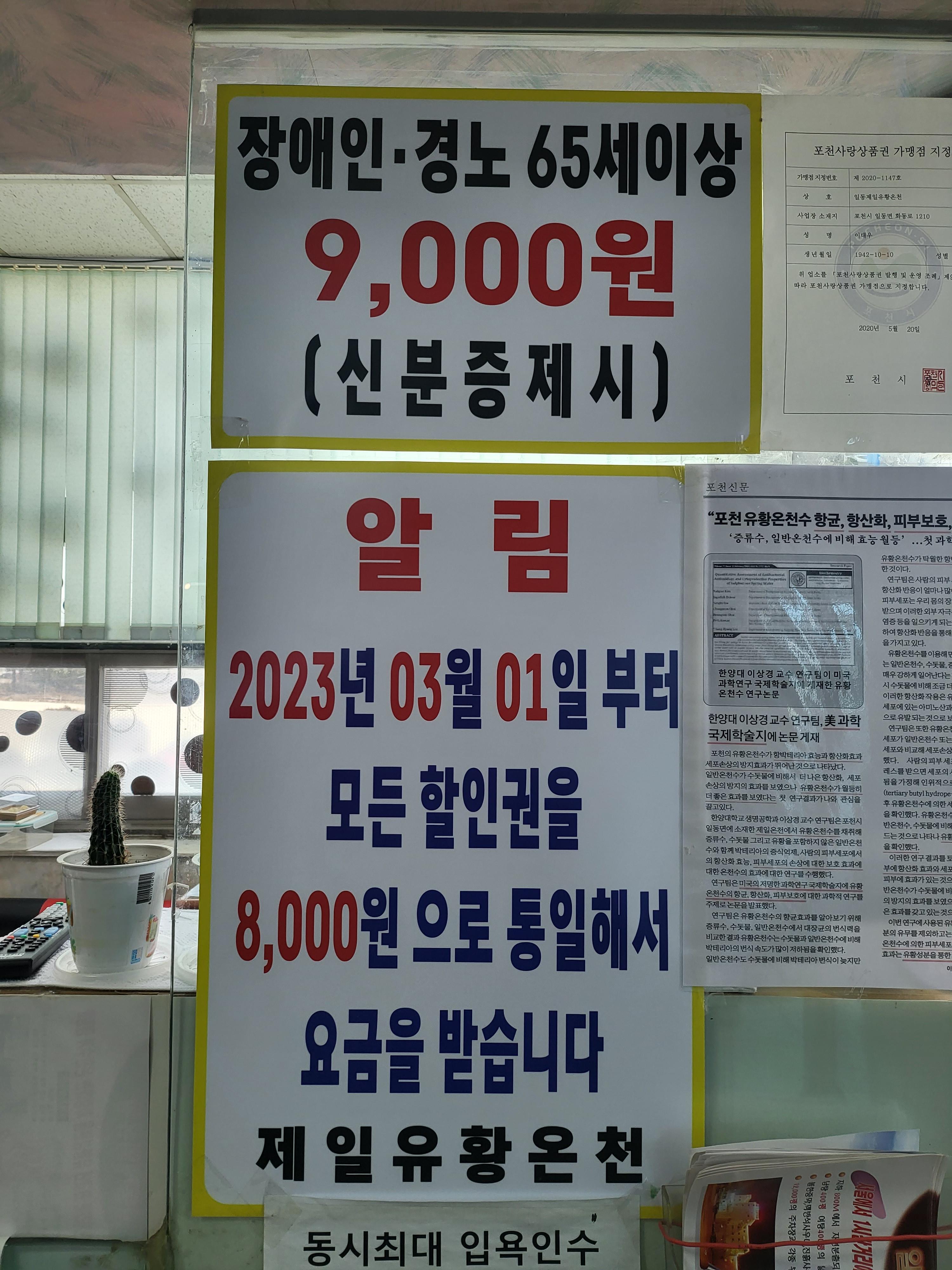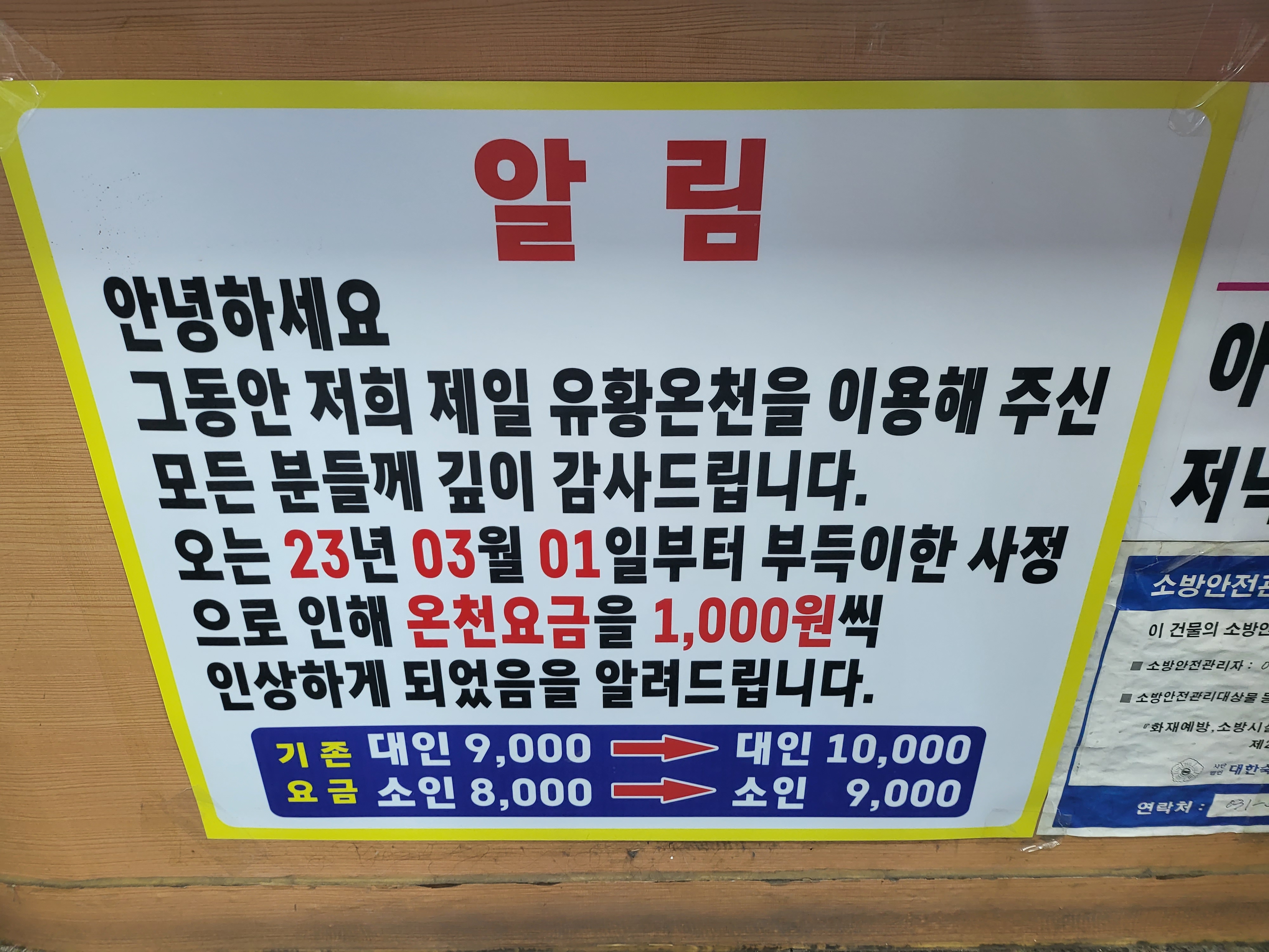 가는 날이 장날이라고, 제가 갔을 때가 경기도 포천 일동 제일온천 요금이 1천 원씩 오른 시기였네요.