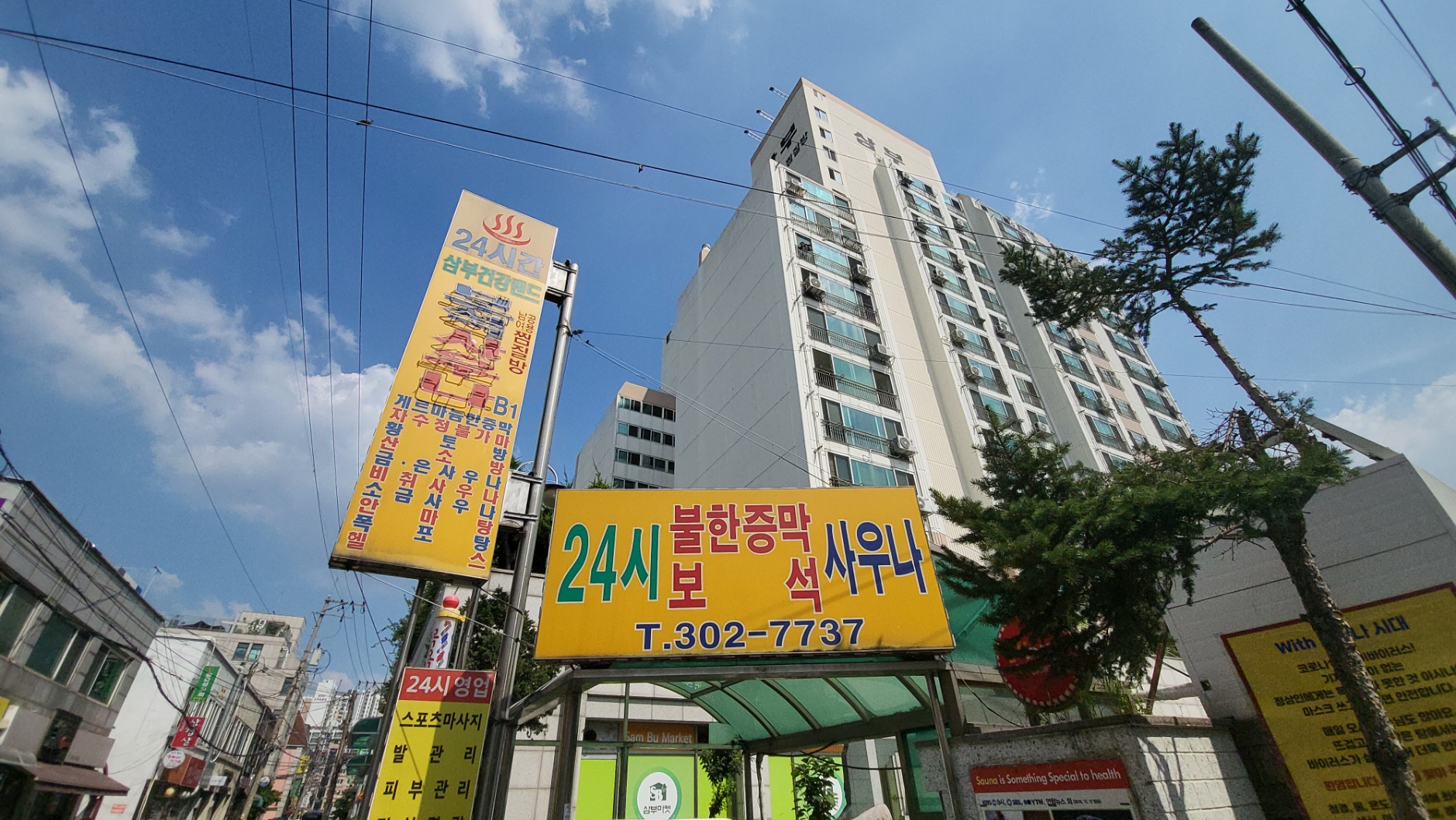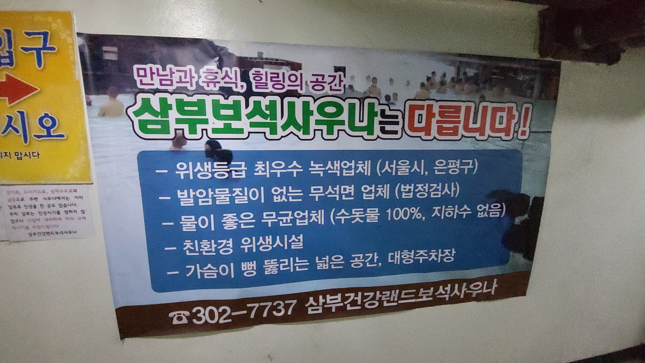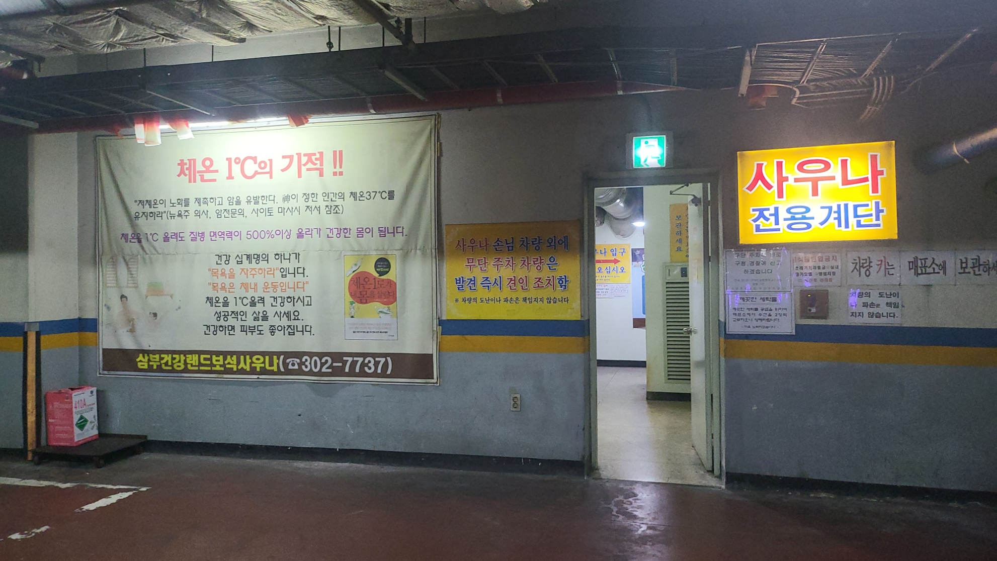 이곳은 <24시간 삼부건강랜드 불한증막 보석 사우나>라고, 아주 긴 이름이 적힌 사우나 찜질방 목욕탕입니다.