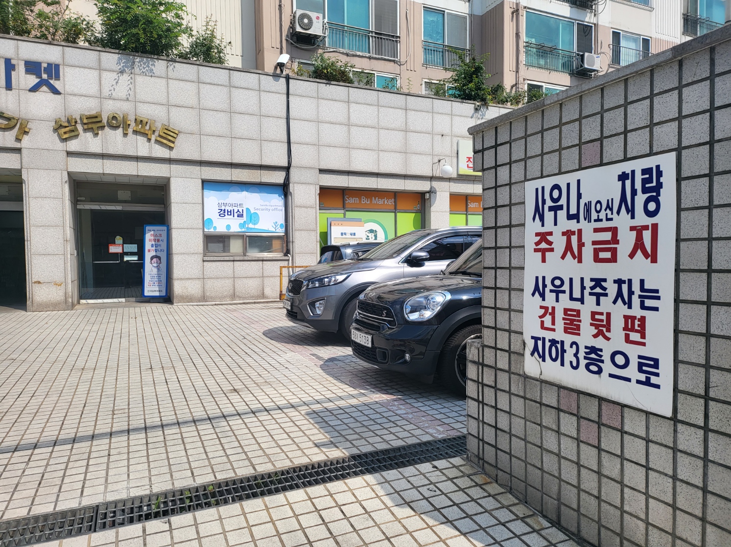 저희도 자차로 이동했는데요, 아파트 정문 지상주차장은 입주민 전용공간이었어요.