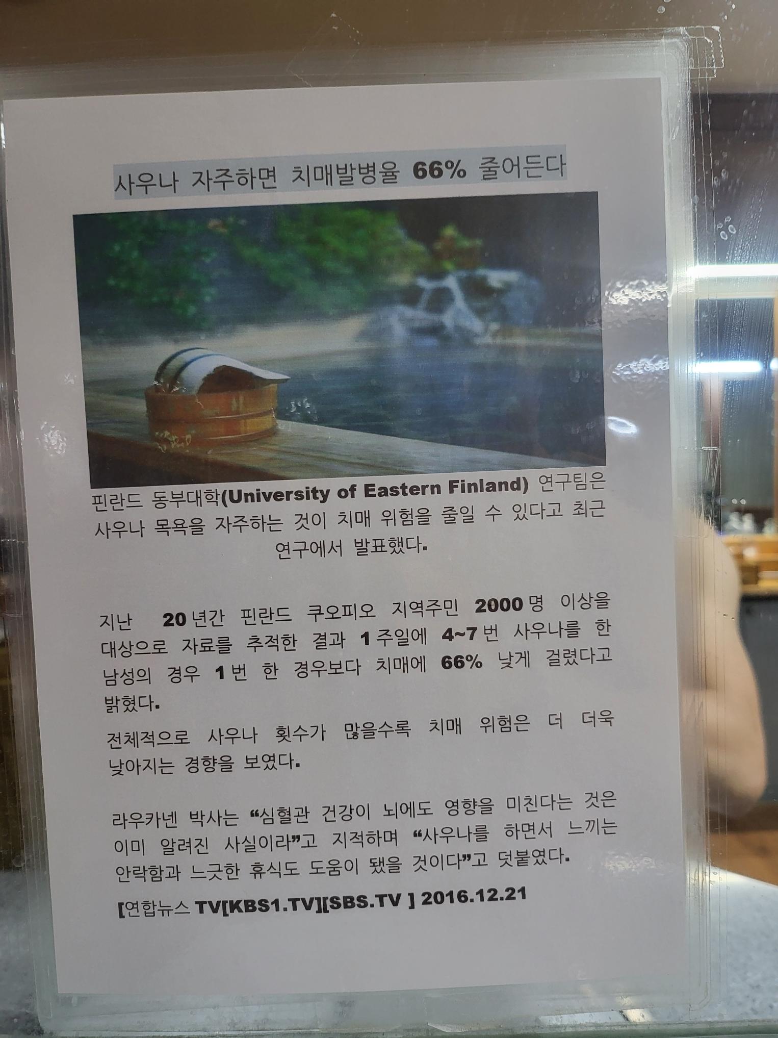 사우나를 자주하면 치매발병율이 66% 줄어든다고 하네요.