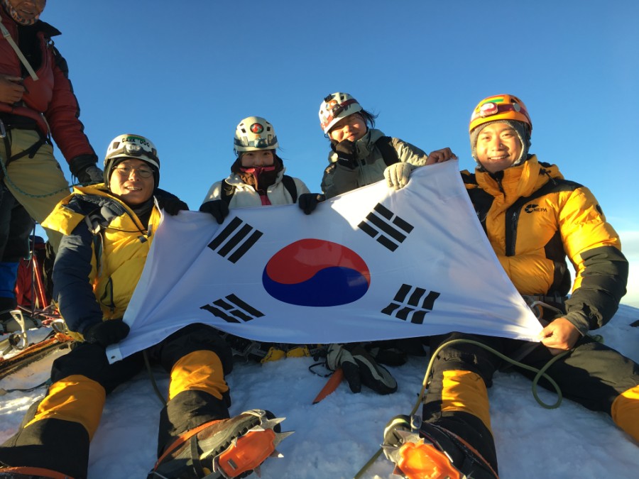 먼저 도착한 한국 여성 2분과 태극기를 들고 인증샷 완료. 다들 수고많았습니다.